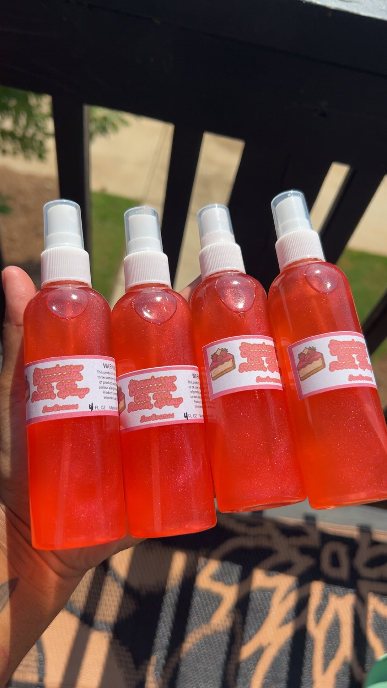 These sprays can be used to freshen up any space desired! They can be used in cars and will not stain any type of seat and can be sprayed in rooms as well. This product IS NOT meant for use on any person or animal! Please use as directed!